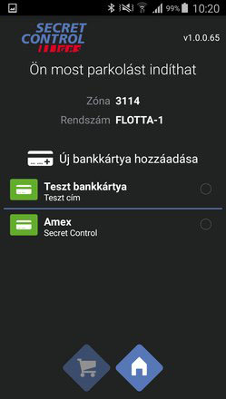 A parkolás indítását megelőzően kiválasztható az a regisztrált bankkártya, amelyről a fizetés történik. A kártya kiválasztását követően megjelennek az adott kártyához rendelt számlázási adatok.