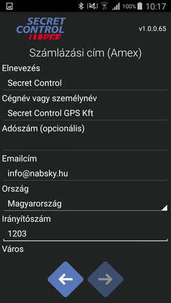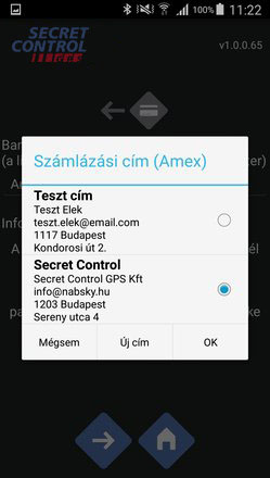 A rögzített számlázási adatok listája választási lehetőséget biztosít, valamint bármikor új számlázási adat rögzíthető az OBU City alkalmazásban.