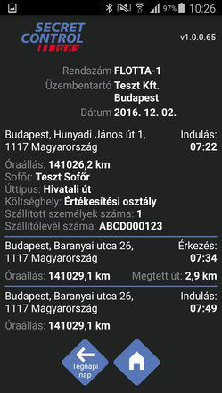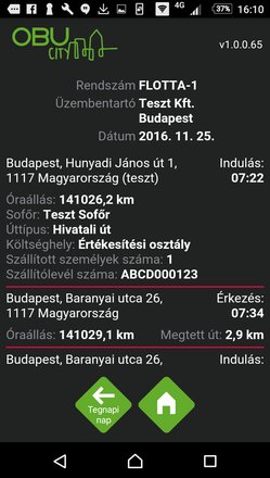 A hivatali út választásáról visszaigazolás érkezik az applikációban, amely tartalmazza a vállalati elszámolási rendszer számára szükséges adatokat.